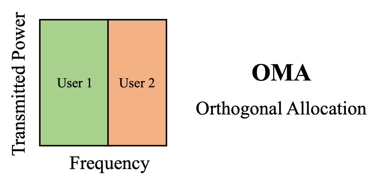OMA is a wireless communication technique where the communication resources are allocated orthogonally to users. What “orthogonal” resource allocation means is that resources such as frequency, power, or time are assigned exclusively to users, in order to prevent interference between the users.